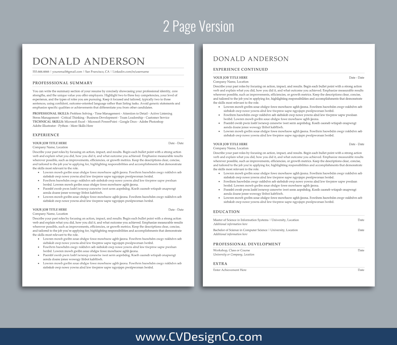– 2 Page Resume/CV Template in MS Office .docx Format.
