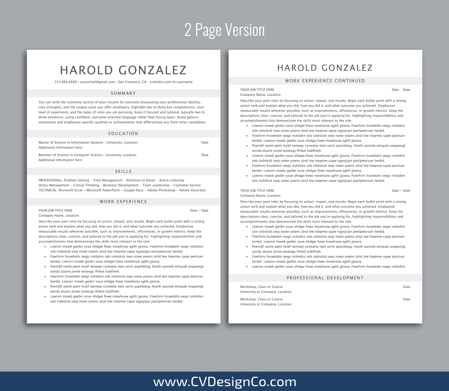 – 2 Page Resume/CV Template in MS Office .docx Format.