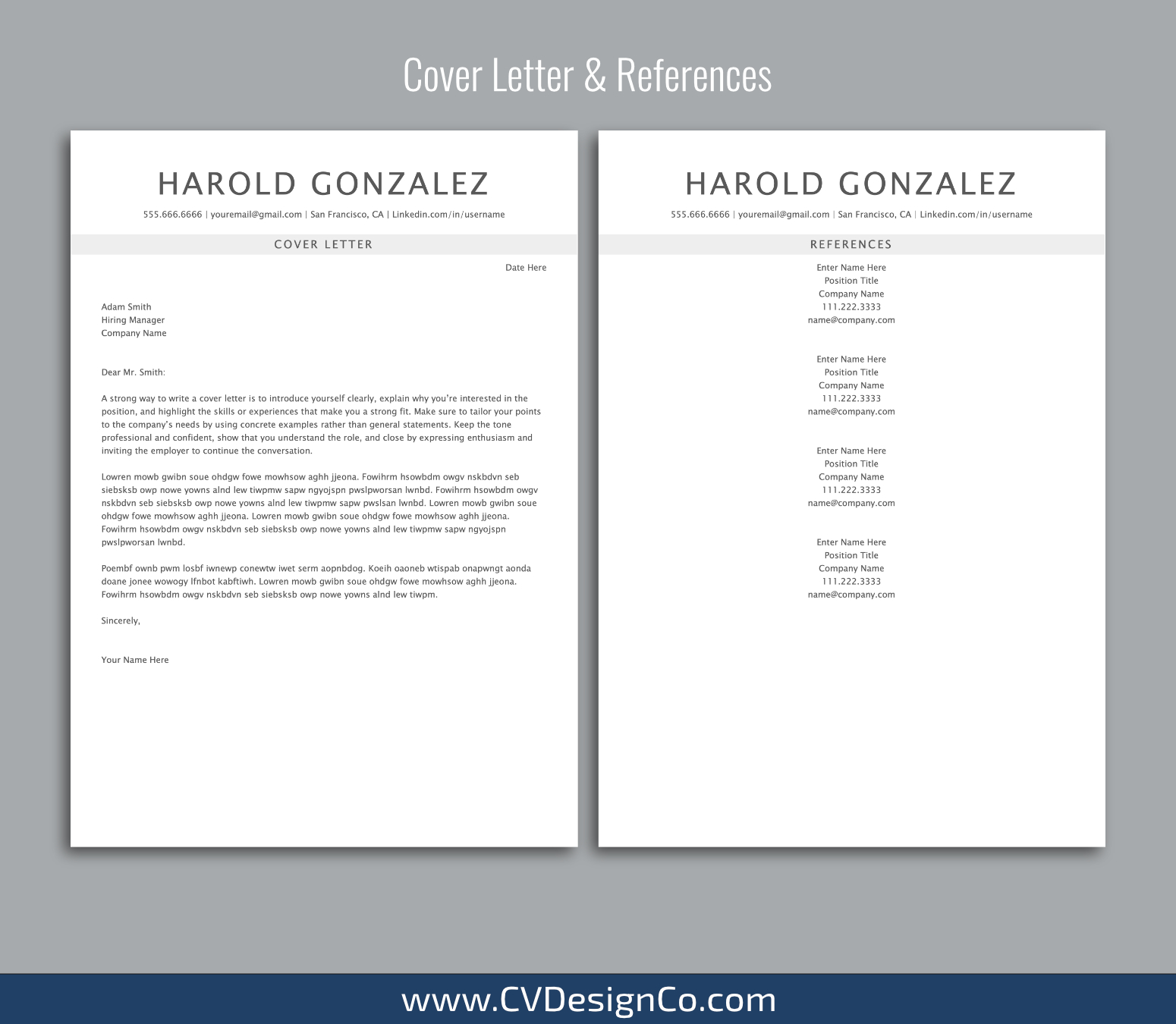 CVDesignCo.com provides high quality and professional ATS-friendly resume templates/CV templates with matching cover letter, references template, and easy-to-follow user guide that will help you stand out from the crowd.