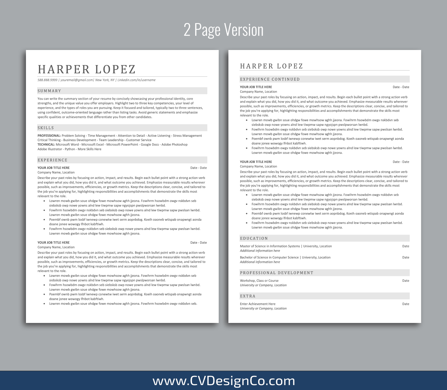 – 2 Page Resume/CV Template in MS Office .docx Format.
