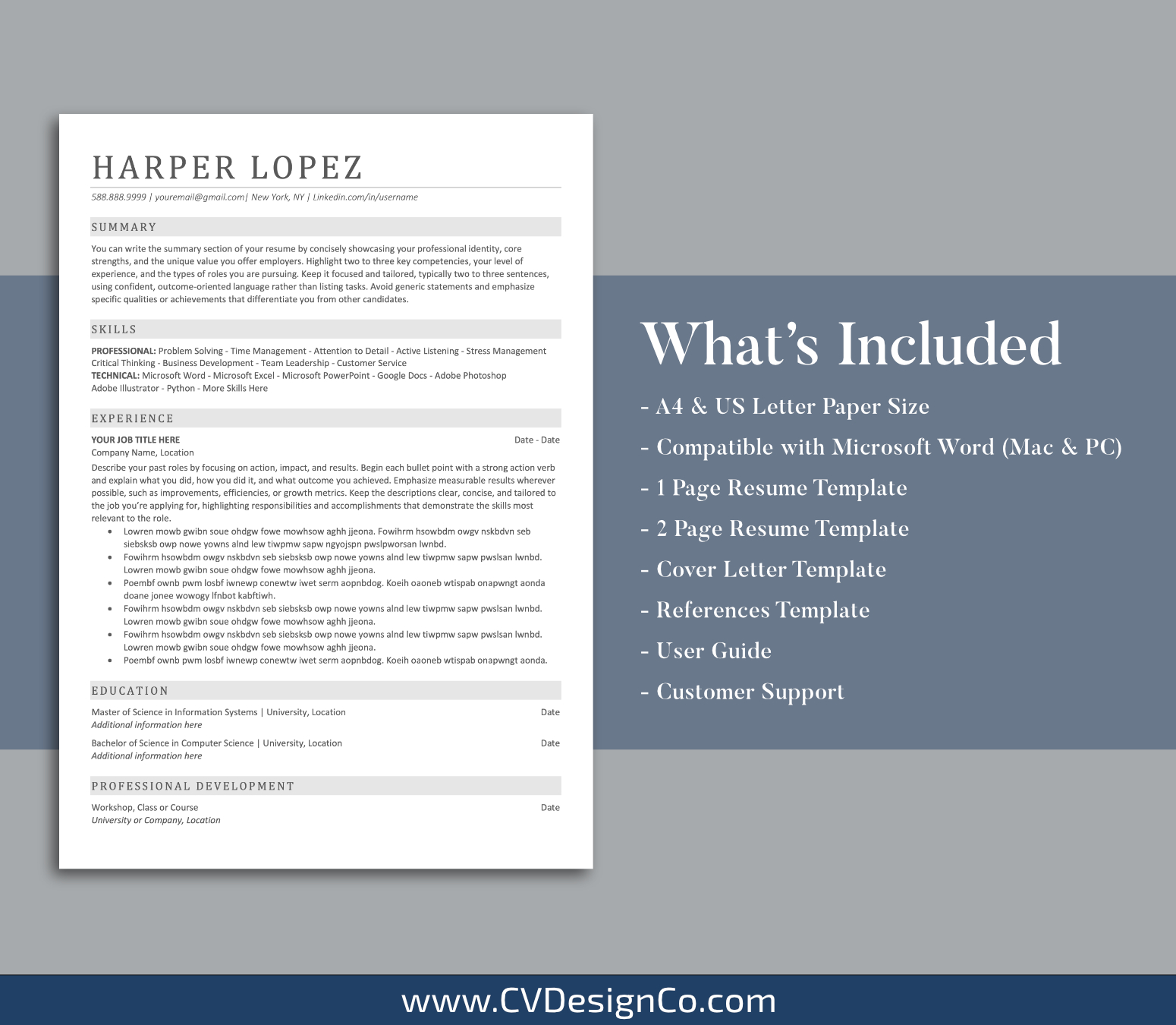 – A4 and US Letter Resume/CV Templates included.