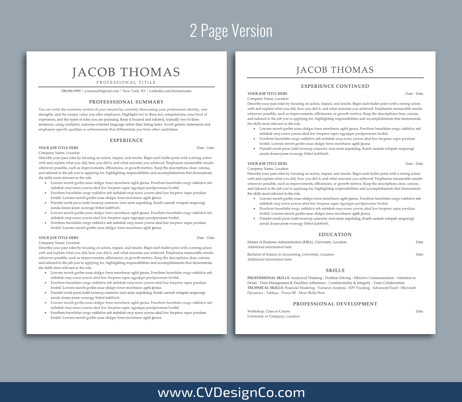 – 2 Page Resume/CV Template in MS Office .docx Format.