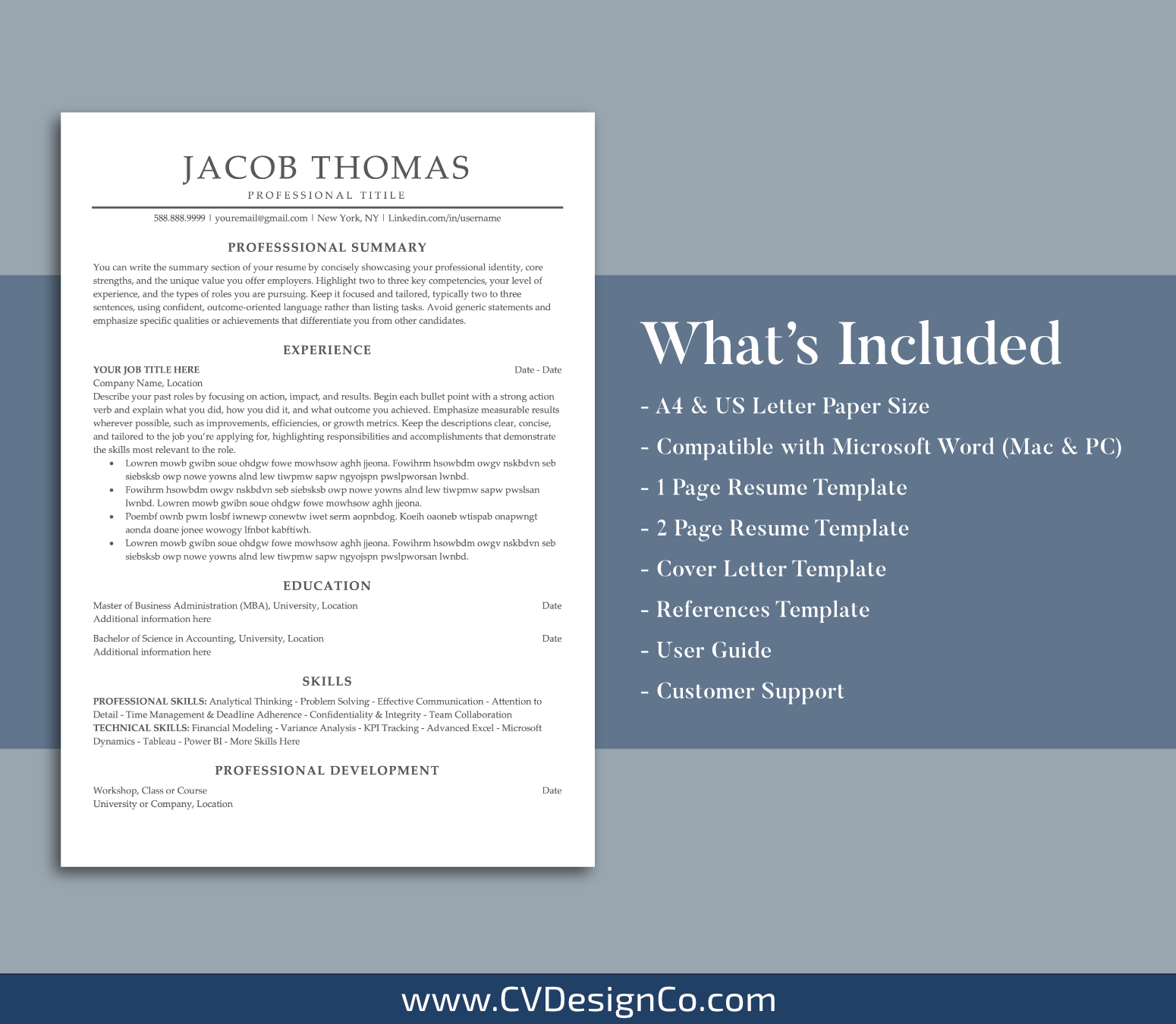 – A4 and US Letter Resume/CV Templates included.