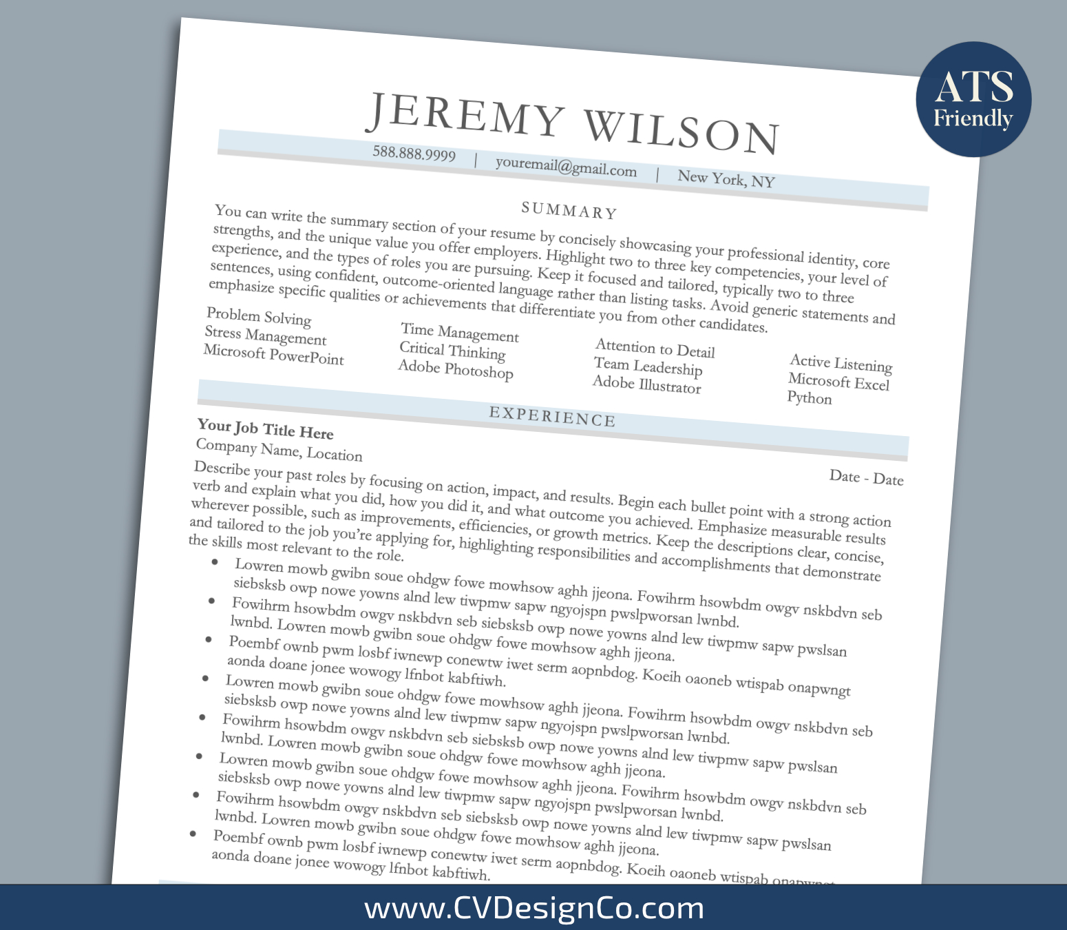 CVDesignCo.com provides high quality and professional ATS-friendly resume templates/CV templates with matching cover letter, references template, and easy-to-follow user guide that will help you stand out from the crowd.