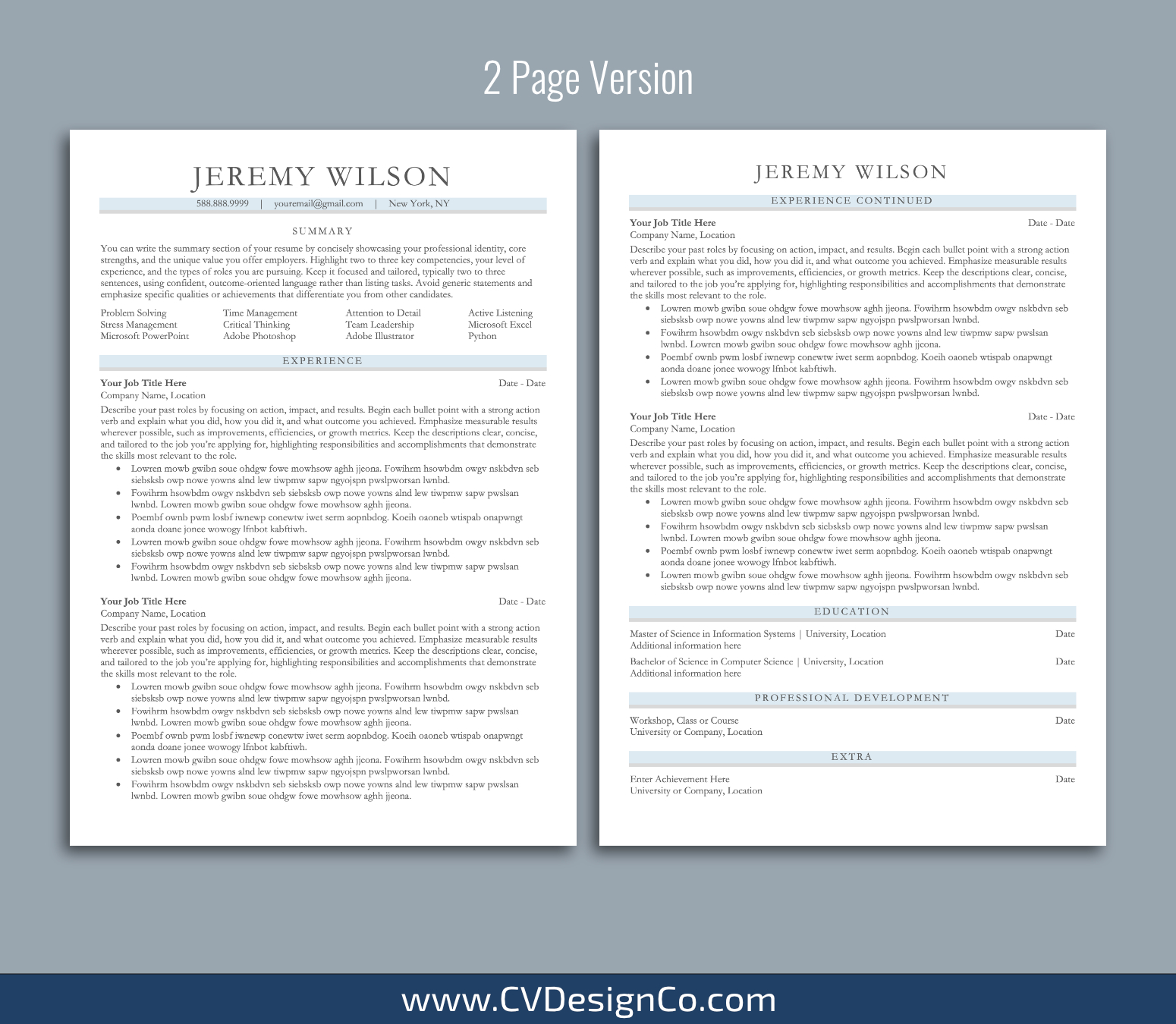 – 2 Page Resume/CV Template in MS Office .docx Format.