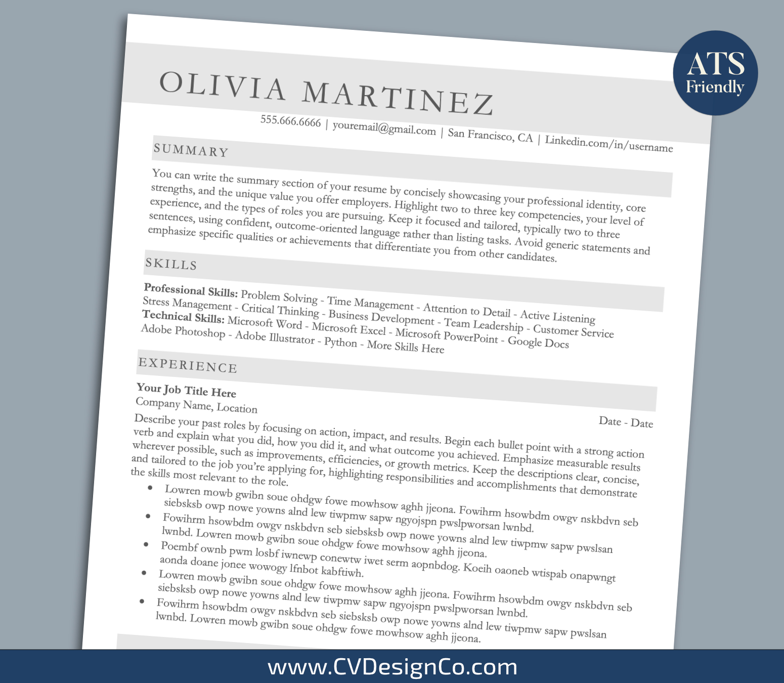 ATS Friendly Resume Template for MS Word, Professional and Simple CV Template Design, Clean Resume, 1-2 Page Resume Format, Instant Download: Olivia Resume