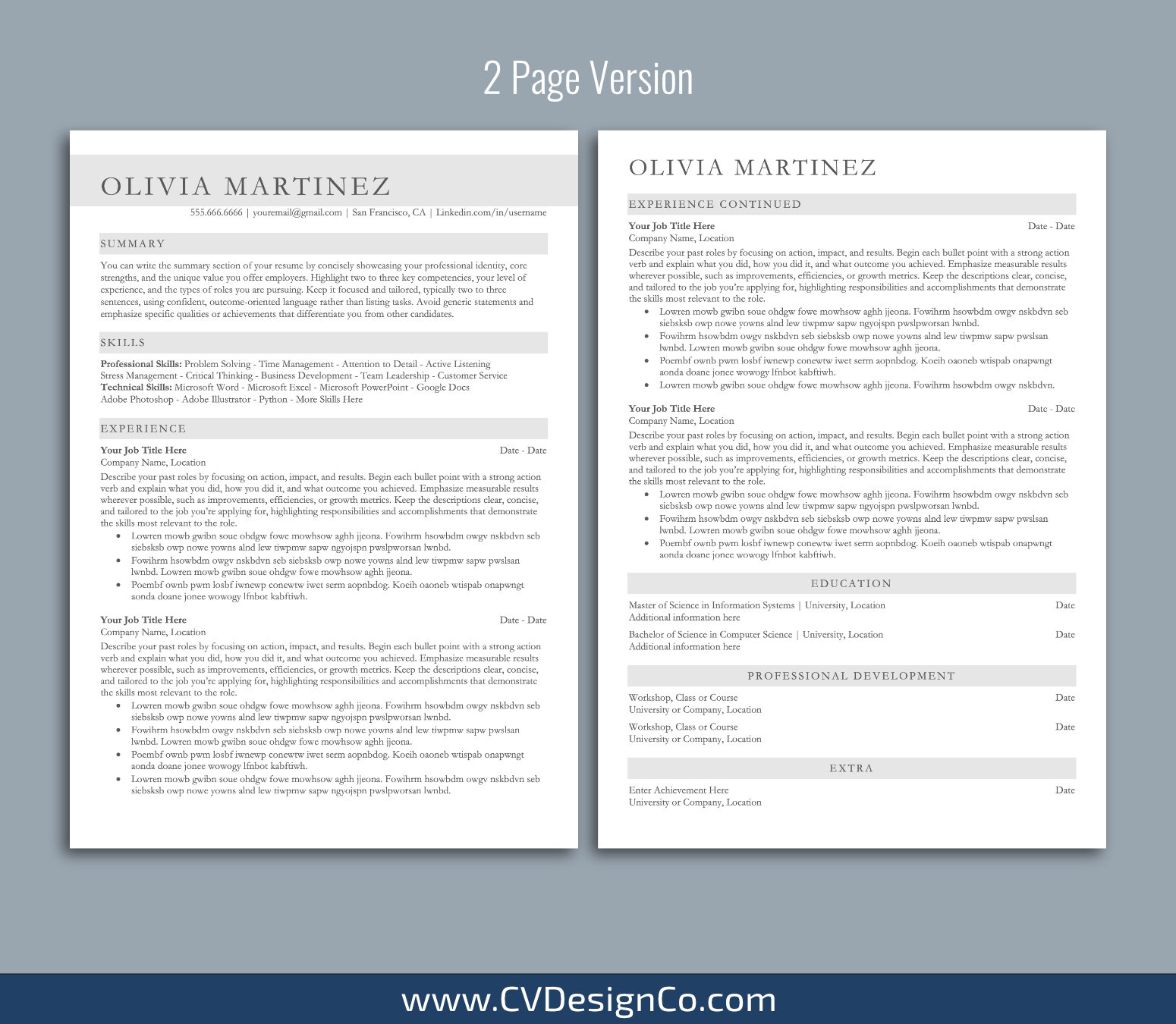– 2 Page Resume/CV Template in MS Office .docx Format.