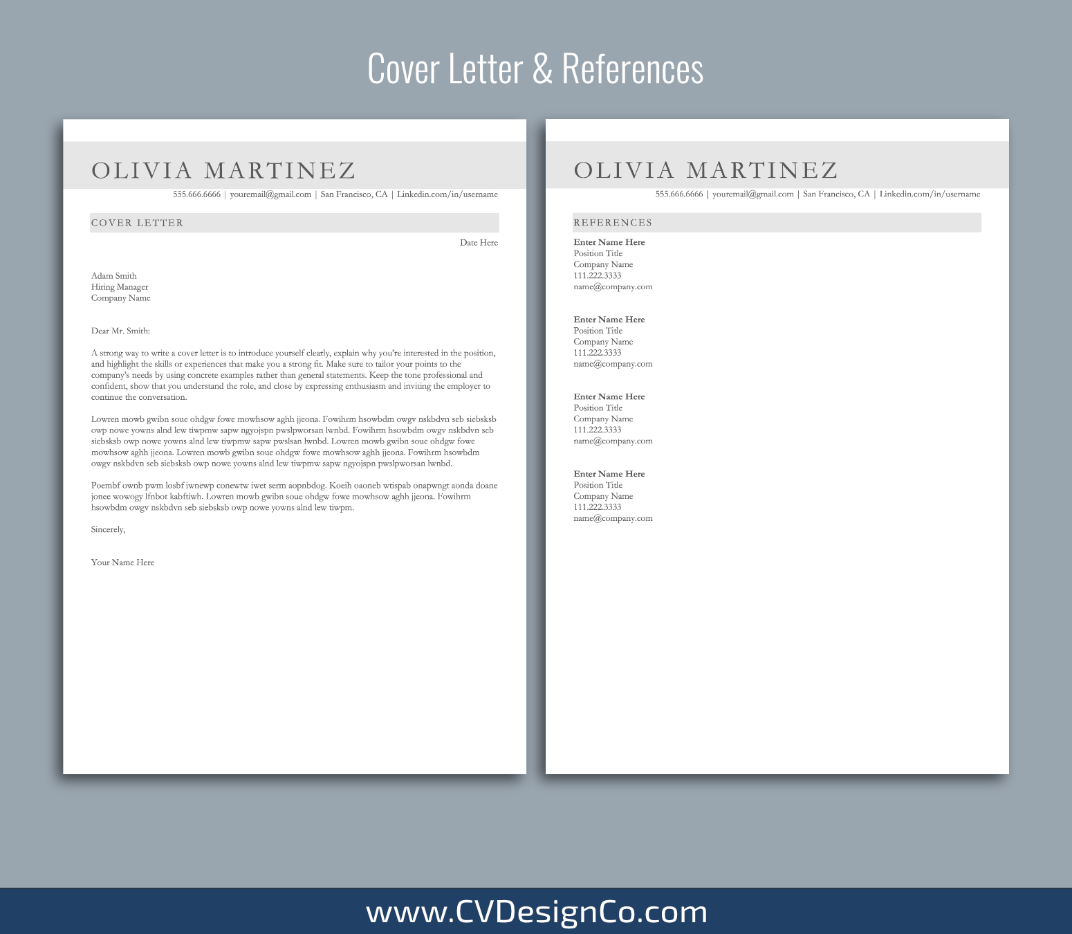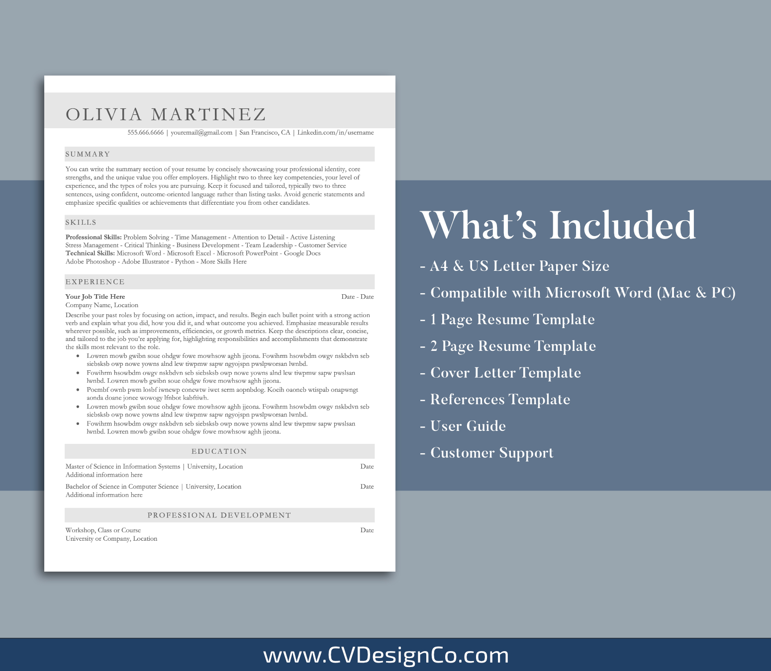 CVDesignCo.com provides high quality and professional ATS-friendly resume templates/CV templates with matching cover letter, references template, and easy-to-follow user guide that will help you stand out from the crowd.
