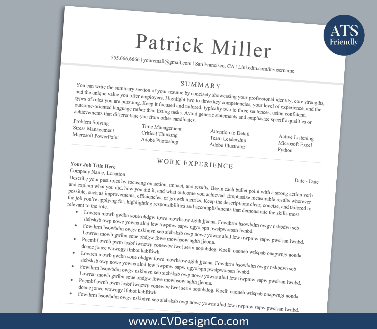 CVDesignCo.com provides high quality and professional ATS-friendly resume templates/CV templates with matching cover letter, references template, and easy-to-follow user guide that will help you stand out from the crowd.