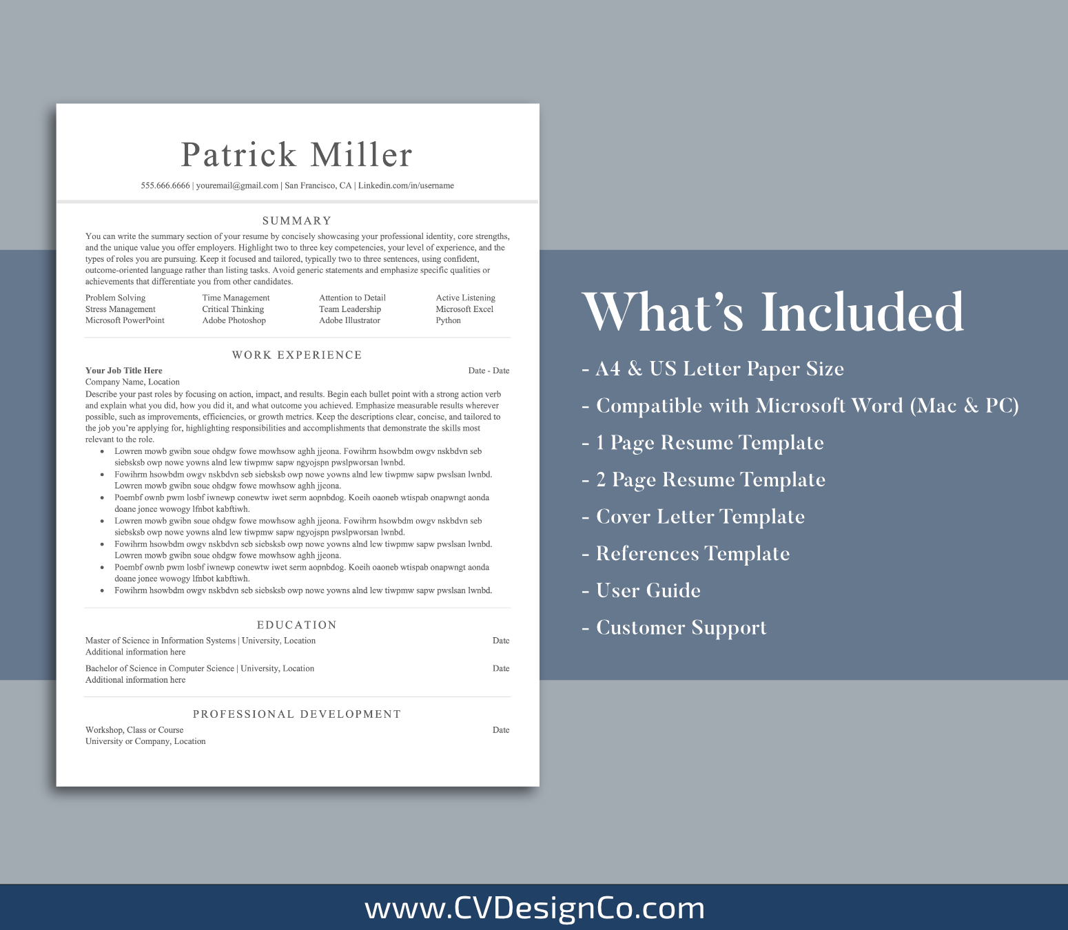 – A4 and US Letter Resume/CV Templates included.