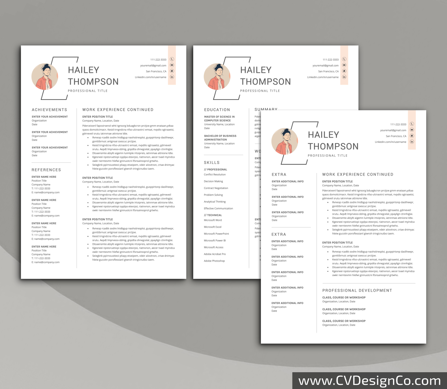 Professional Resume Template for Microsoft Word, Simple CV Template Design, Modern Resume Template, 3 in 1 Best Resume Format, Instant Download: Hailey Resume Bundle