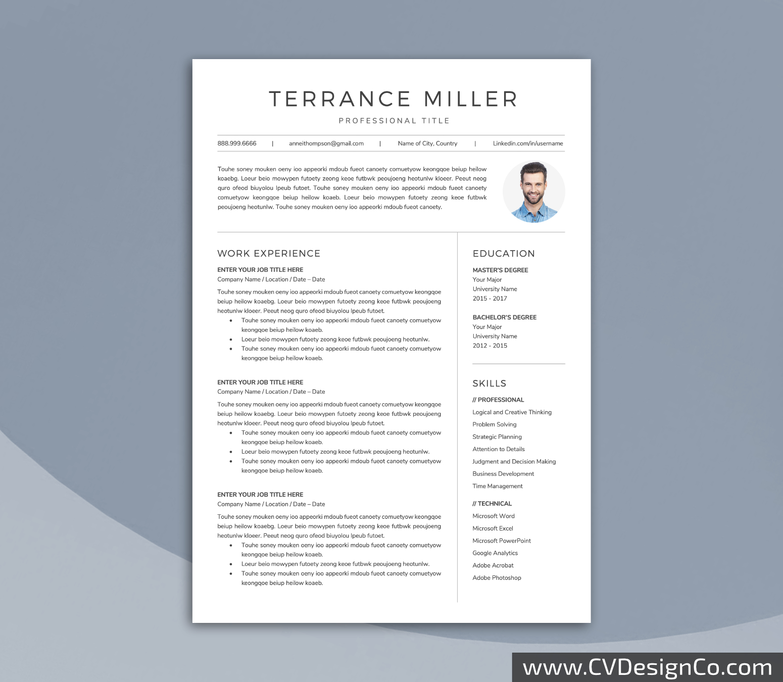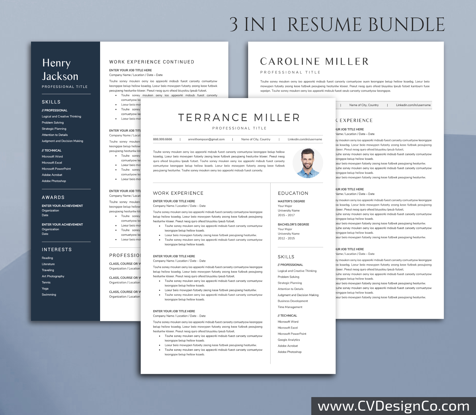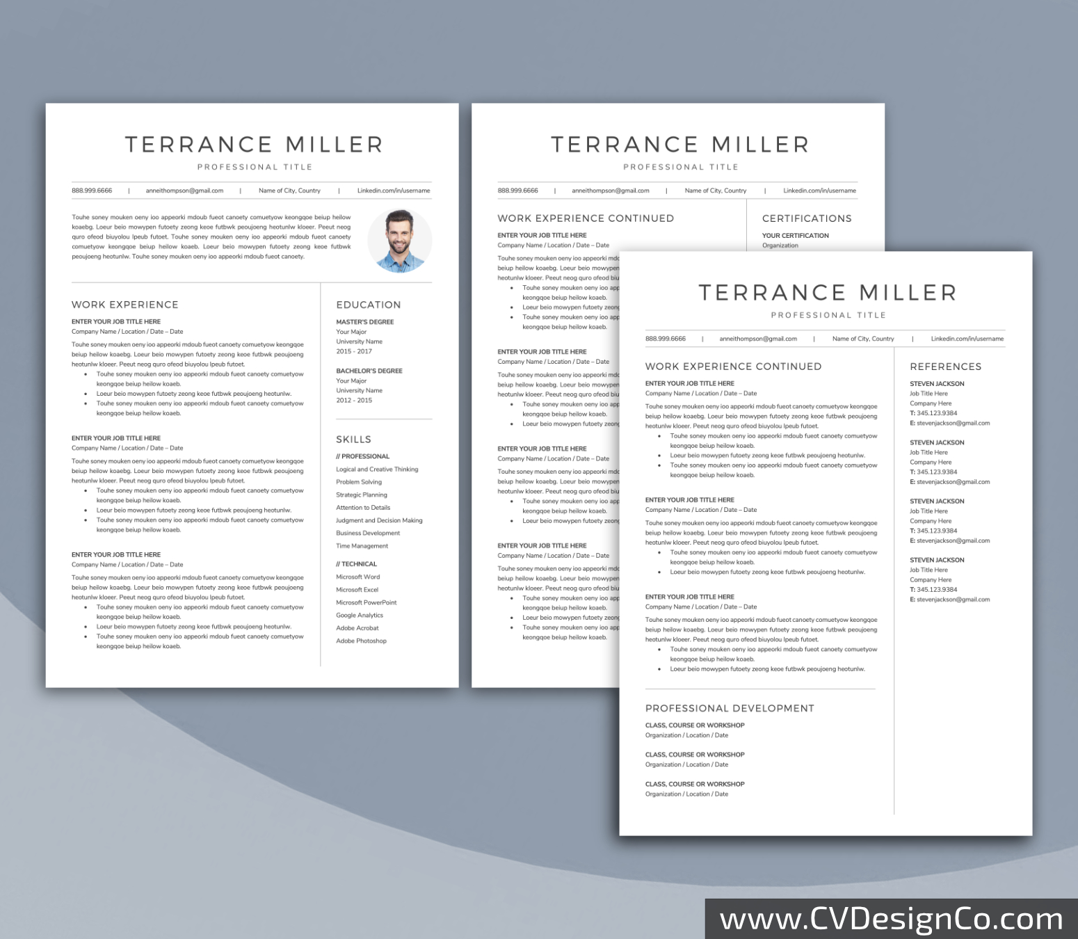 Professional Resume Template for Microsoft Word, Simple CV Template Design, Modern Resume Template, 3 in 1 Best Resume Format, Instant Download: Terrance Resume Bundle