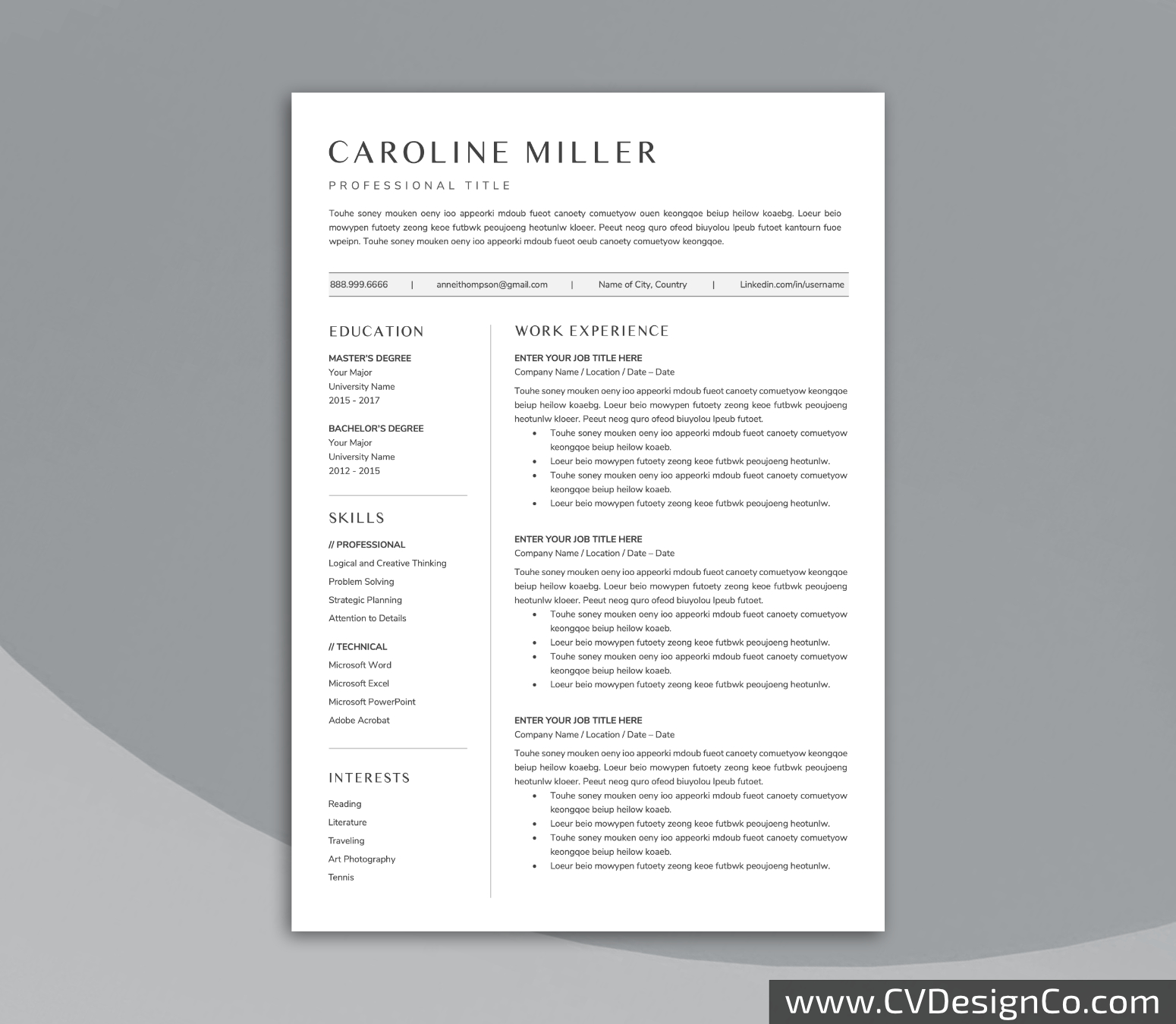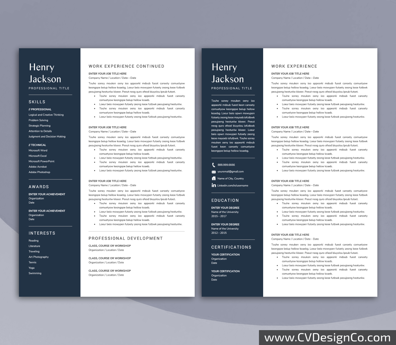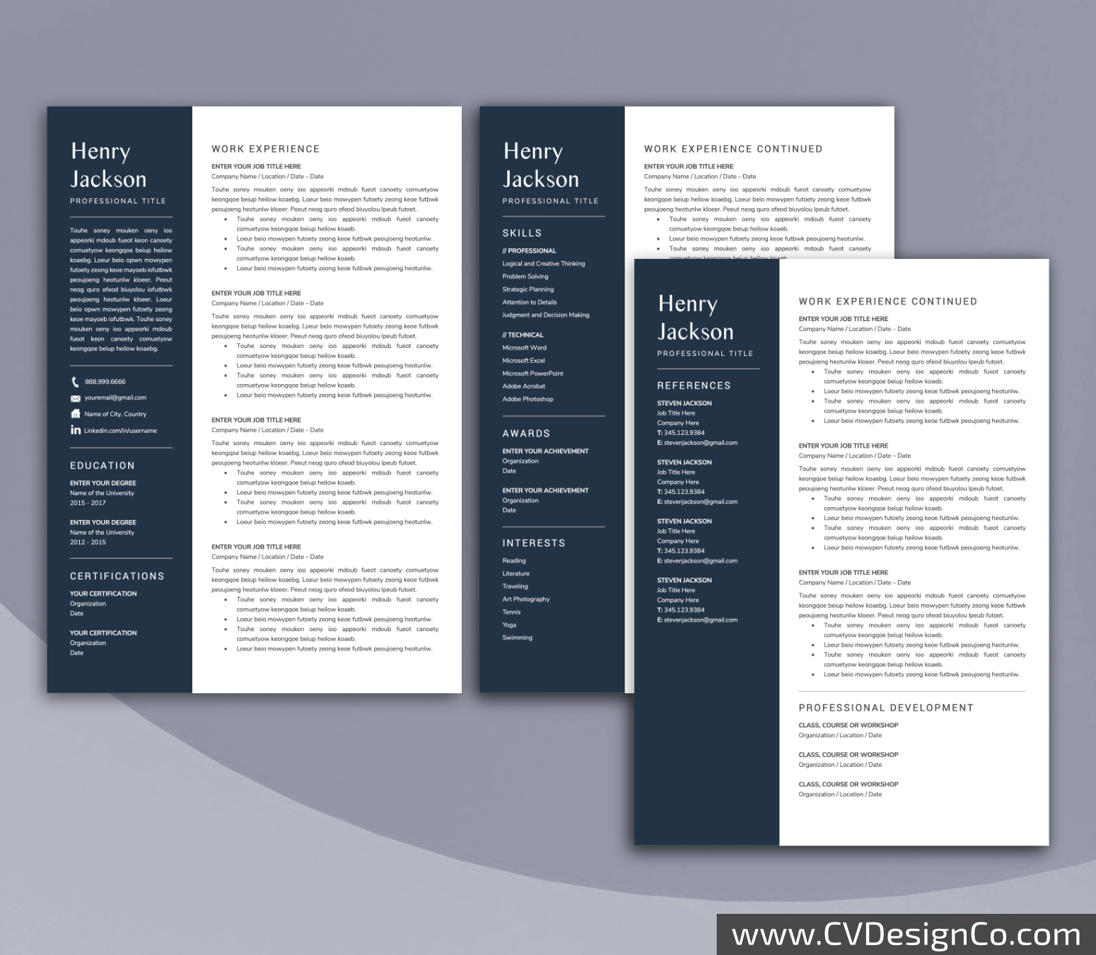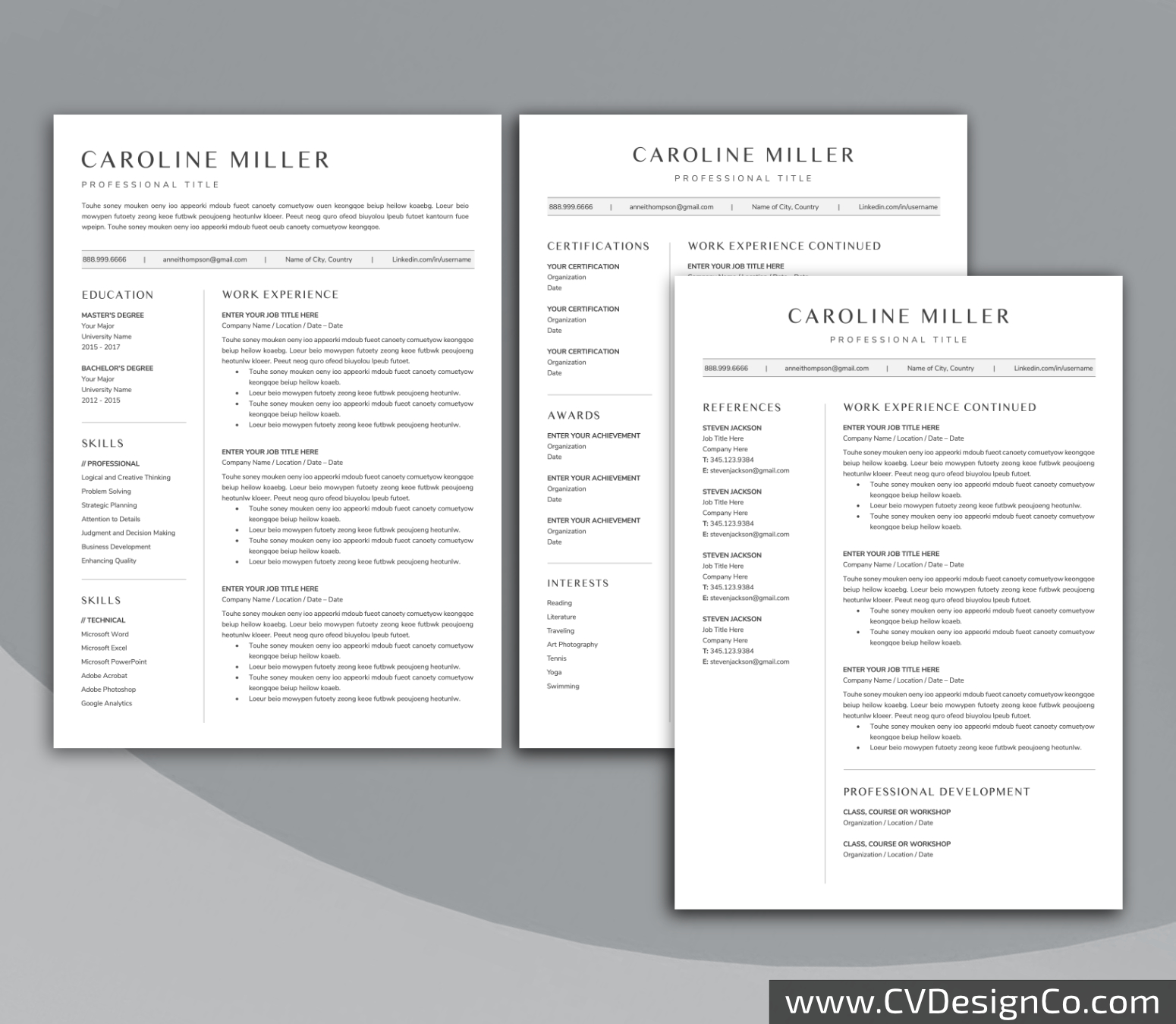 – 3 Page Resume/CV Template in MS Office .docx Format.