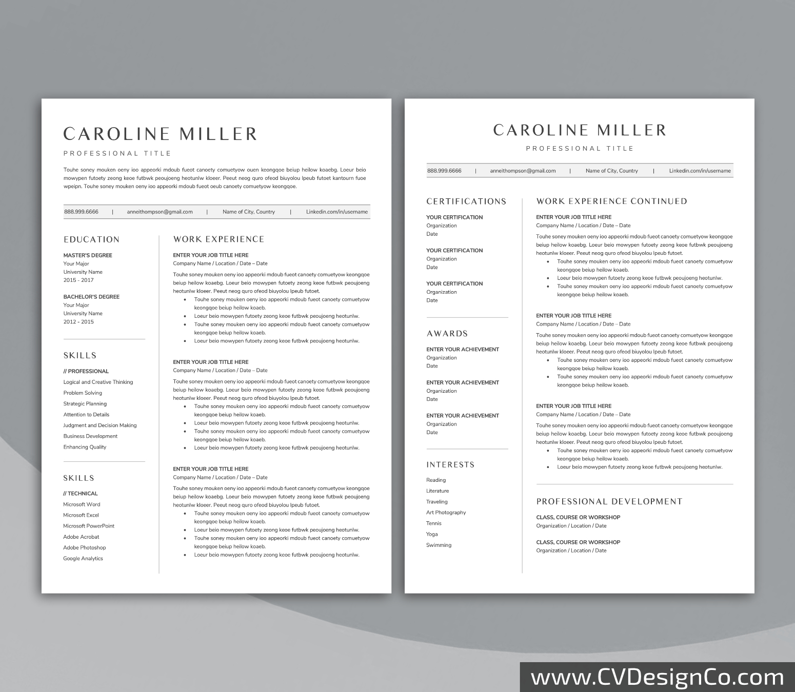 – 2 Page Resume/CV Template in MS Office .docx Format.